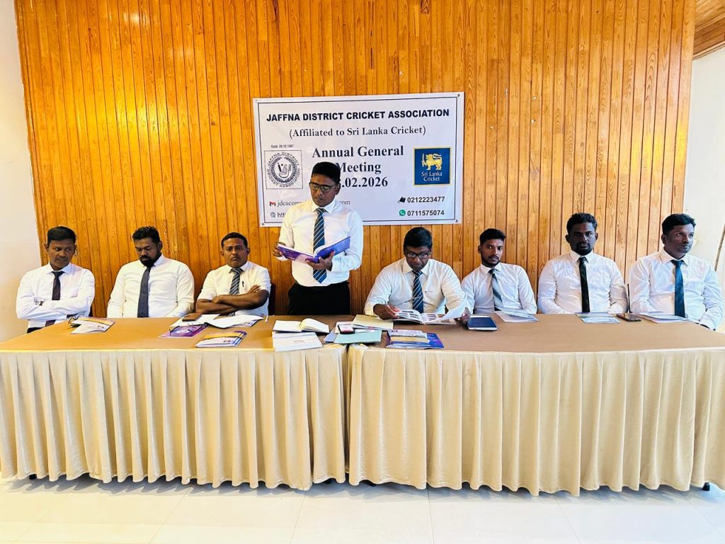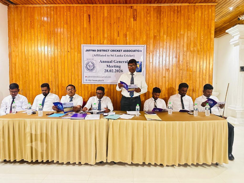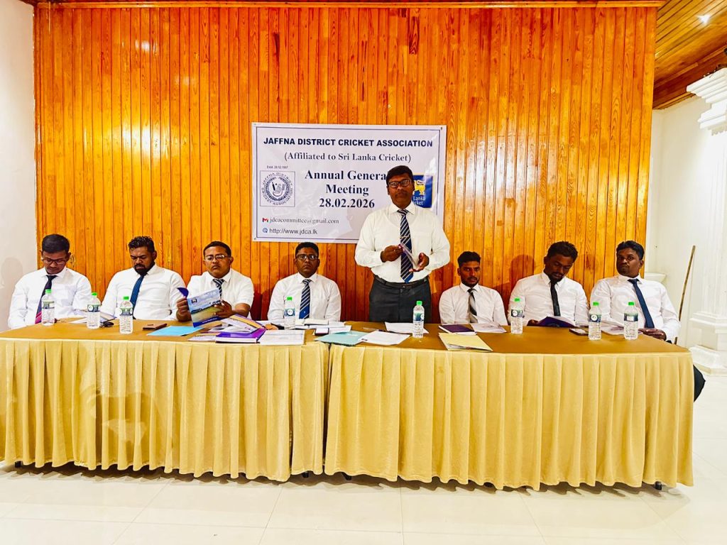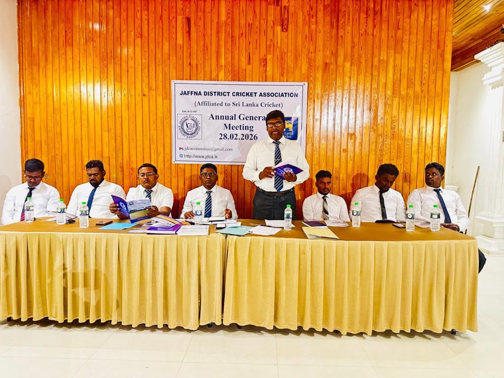 The Annual General Meeting (AGM) of the Jaffna District Cricket Association for the year 2026 was held at the J Guest Hotel on February 28, 2026, at 5:30 P.M. The meeting was attended by the Office Bearers, 24 Affiliated Club Representatives, Office Staffs, and the District Coach.