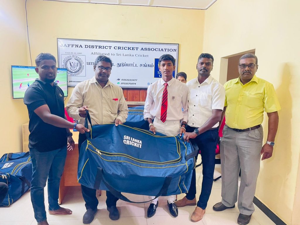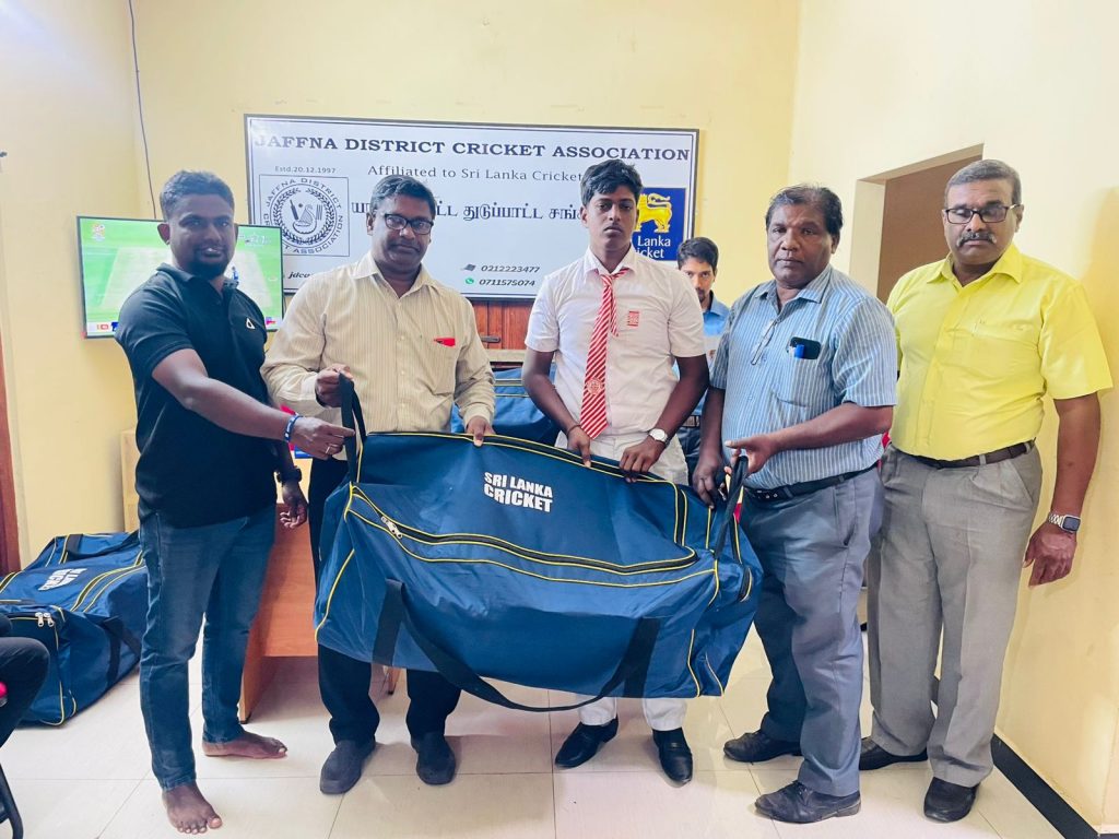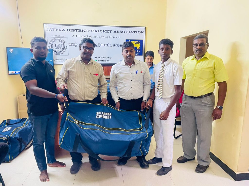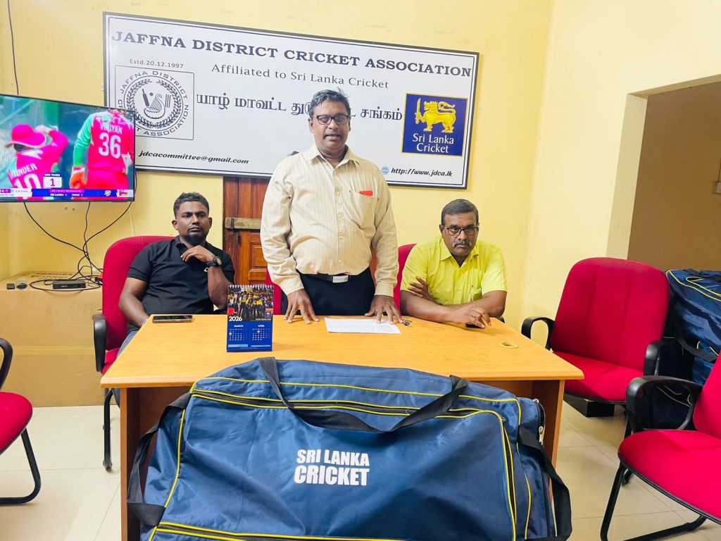 The Sri Lanka Cricket distributed the Senior Material Bags to the Under-19 Schools Cricket Tournament 2025/26 at the Jaffna District Cricket Association Office on 12.02.2026. Members of the JDCA, SLSCA northern province representative, schools cricket team captains, coaches, masters in charges and JDCA office staffs participated in this event.